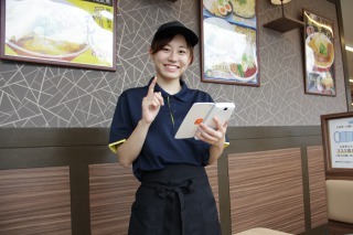 お客様に注文をお伺いしたら、オーダーを厨房に送信。