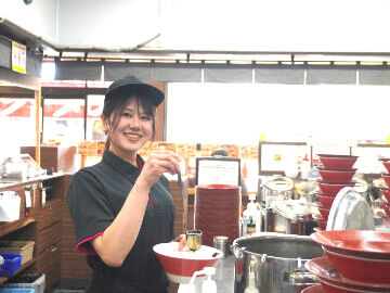 ベテランスタッフになればラーメンの調理や盛り付けなども行います。